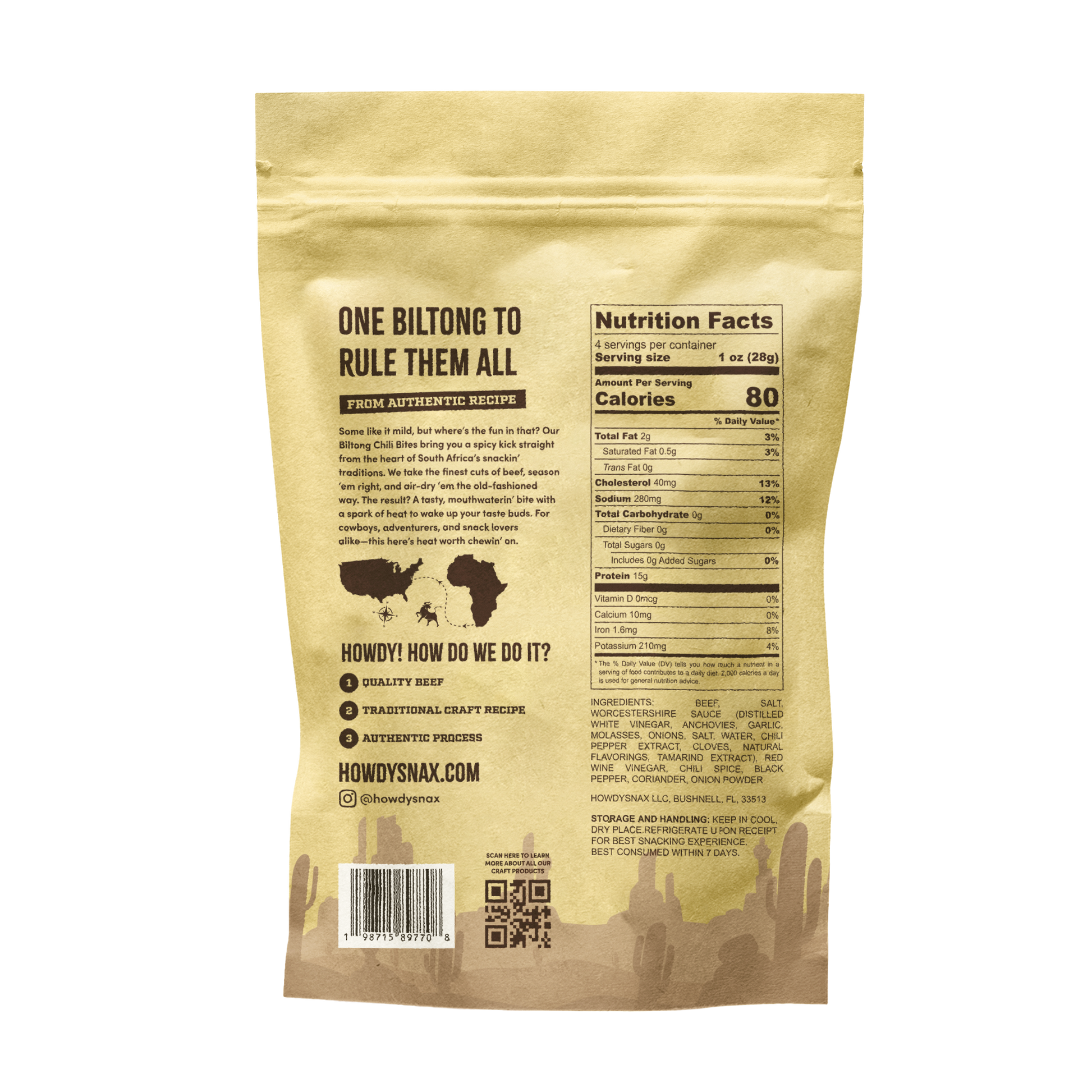 The traditional Chili Bites is a well balanced heat Biltong snap stick. It brings the heat, but not overbearing. Believe us, once you had one, you cant put that bag down!