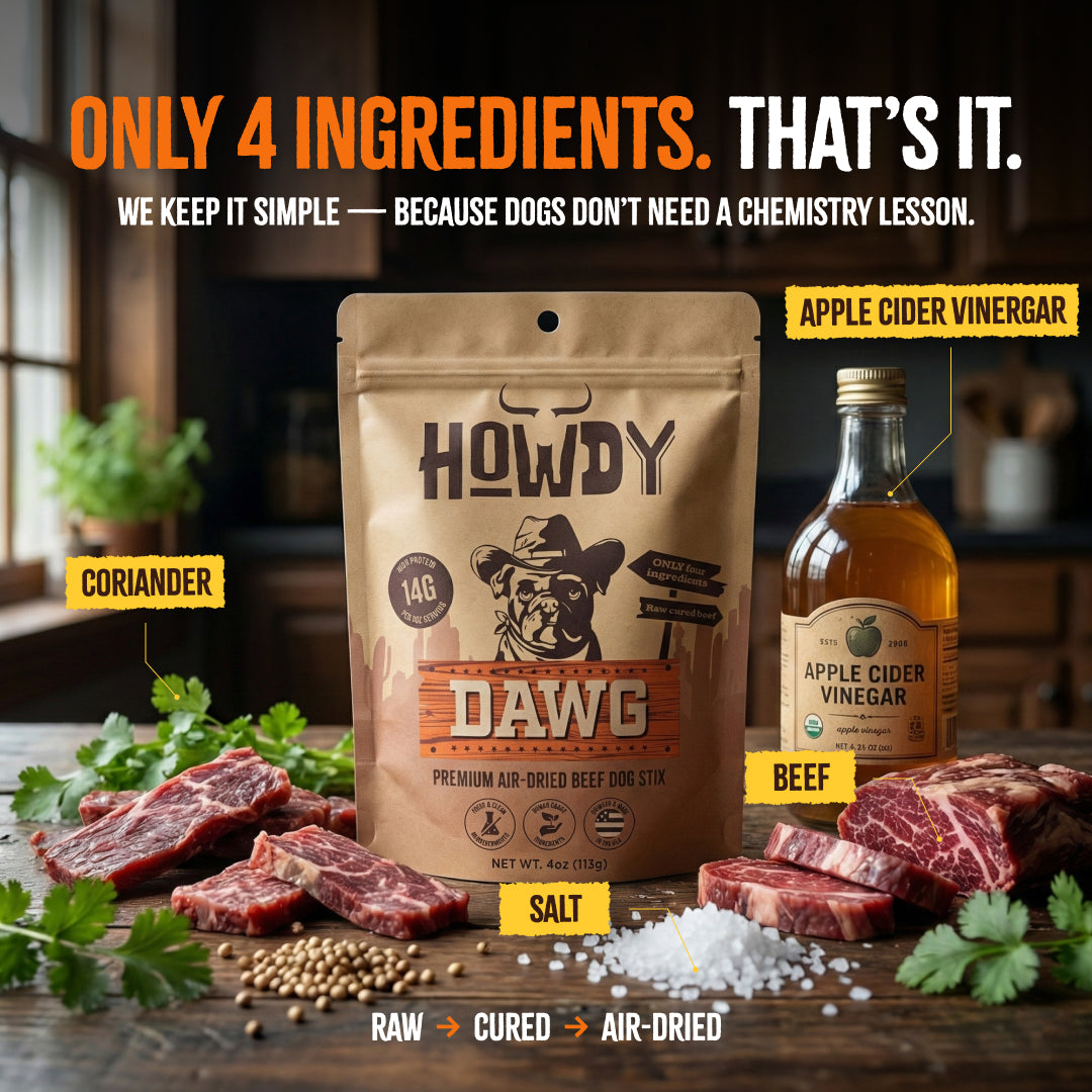 Howdy DAWG Beef Stix, an Air-Dried Beef Stick your dawgs will crave!