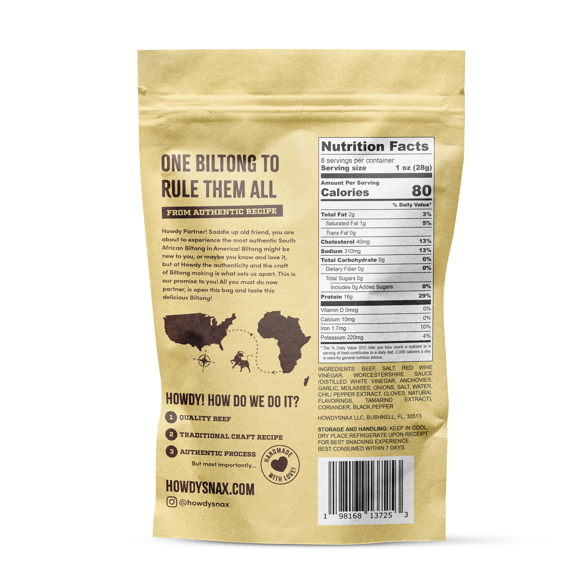 Jerky, but NOT Jerky! Marinaded , cured & air-dried tender beef snack that will blow your mind! You can expect tender thinly sliced beef spiced to perfection using our authentic South-African recipe.